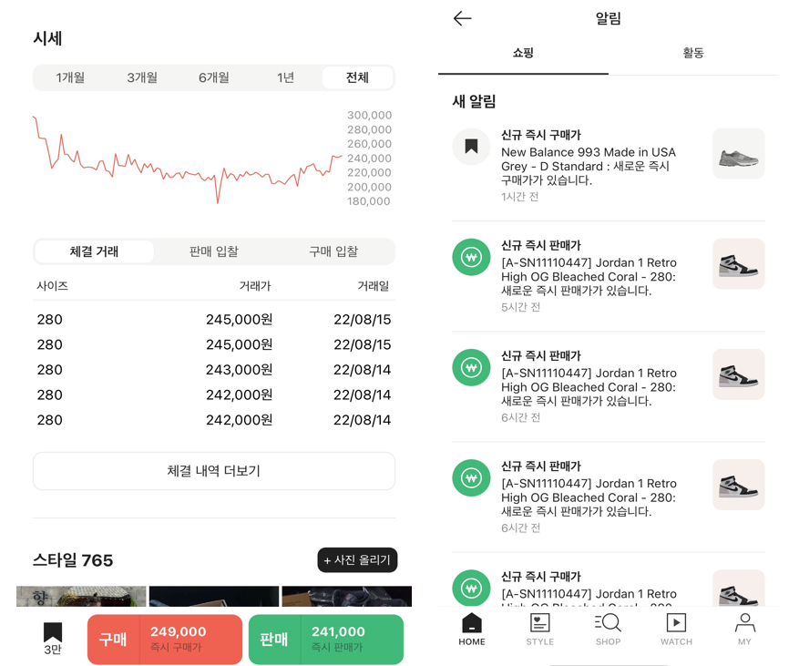 매일 주식 창 만큼이나 알림이 자주 뜨는 나의 창은 KREAM 알림이다.