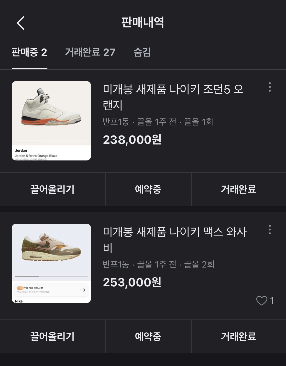 현재 까지 대부분 프리미엄을 받고 리셀 하였지만 2개 제품은 마이너스 피를 받고 그냥 처리했다. 아직 3개 남았다... 제발 마이너스에 처리하고 싶지 않다.